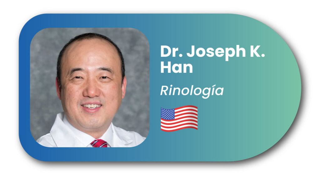 El Dr. Joseph K. Han es Jefe de la División de Rinología y Cirugía Endoscópica de Senos Paranasales y Base de Cráneo, así como de la División de Alergia en la Universidad de Eastern Virginia. Realizó su formación médica en la Universidad de Washington, la Medical College of Pennsylvania y la Universidad de Wisconsin, con especialización en rinología en la Universidad de Ciencias de la Salud de Oregón.