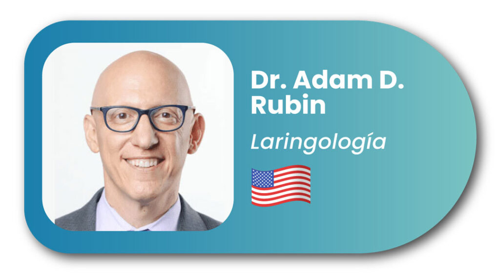 El Dr. Adam D. Rubin, MD, es especialista en Otorrinolaringología y Cirugía de Cabeza y Cuello, con enfoque particular en laringología y trastornos de la voz y deglución. Ha desarrollado una carrera académica y clínica dedicada al diagnóstico y tratamiento de enfermedades de la laringe y de la vía aerodigestiva superior.