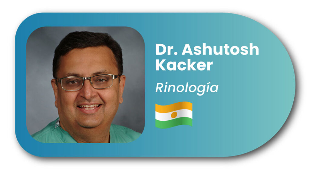 El Dr. Ashutosh Kacker, MD, es un reconocido otorrinolaringólogo y cirujano de cabeza y cuello con una destacada trayectoria académica en Estados Unidos. Se desempeña como Profesor de Otorrinolaringología en Weill Cornell Medical College y médico adscrito en NewYork–Presbyterian Hospital, donde participa activamente en la atención clínica, la investigación y la formación de residentes y estudiantes de medicina.